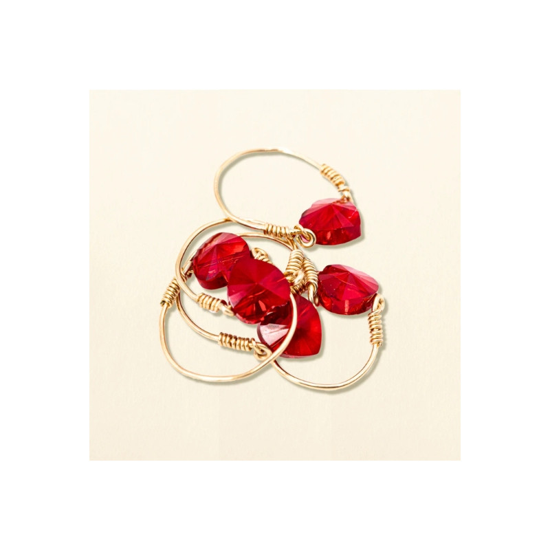 Bague en goldfilled 14 carats avec cœur en cristal rouge. Fabriquée à la main dans l’atelier Marie Starek. Résistante et élégante.