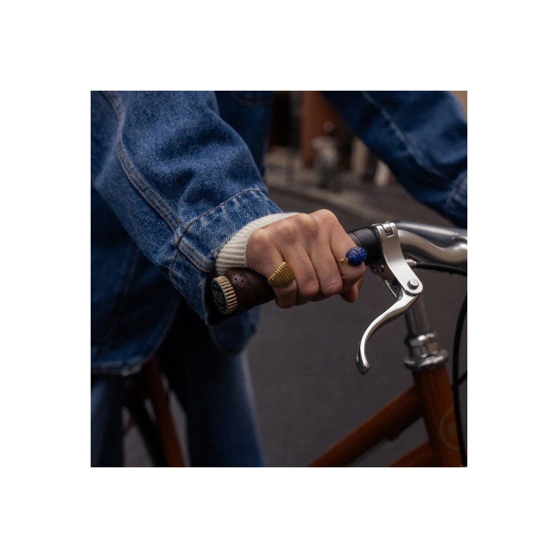 Bague en turquoise sculptée en scarabée, montée sur anneau en goldfilled 14 carats. Pièce résistante et faite main dans l’atelier Marie Starek.