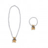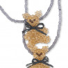 Parure composée d’un collier de perles et d’un bracelet avec pendentif ourson. Chaque pièce est faite main et unique.