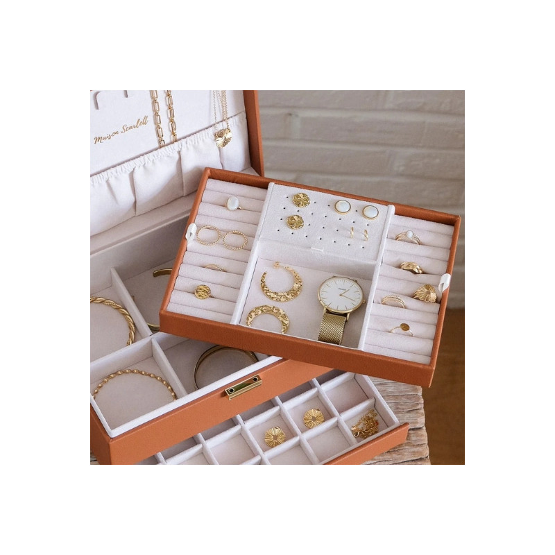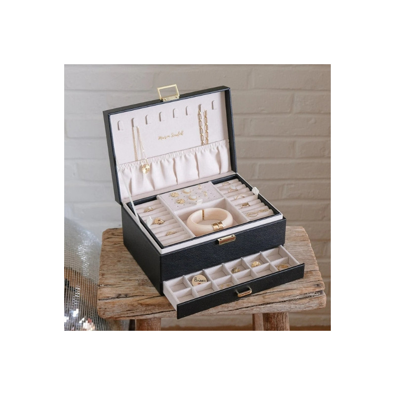 Grande boîte à bijoux Denise en cuir PU grainé signé Maison Scarlett avec rangements multiples pour bijoux.