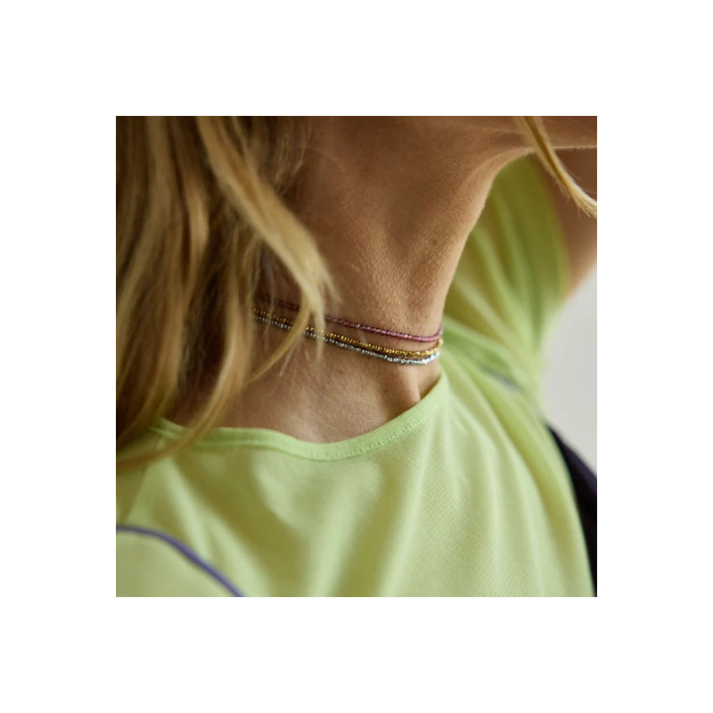 Ce collier ras de cou associe l’éclat chaleureux des pyrites dorées à la finesse du goldfilled, pour un bijou lumineux et délicat. Sa longueur ajustable de 33 à 38 cm permet un porté confortable et personnalisé, mettant subtilement en valeur le cou.