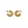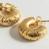 Créoles texturées en étain recyclé doré à l’or fin 24 carats, certifié RJC. Diamètre 15 mm. Tiges d’attache en argent 925. Bijoux façonnés à la main, aux finitions uniques et responsables.