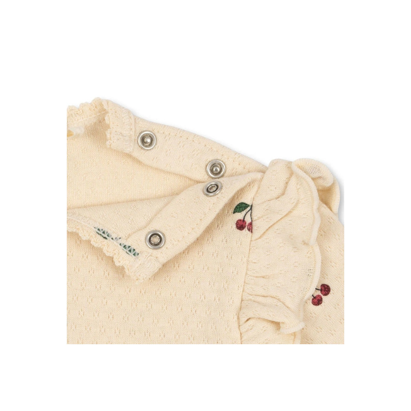 Body doux avec volants aux épaules et boutons-pression à l’entrejambe pour un enfilage simple.