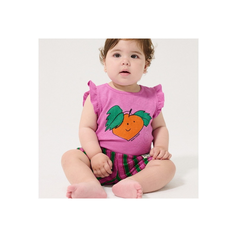 Le body Tangerine fuchsia à volants apporte une touche joyeuse et colorée au vestiaire bébé. Son imprimé mandarine souriante et ses petits volants aux épaules lui donnent un style ludique, tandis que sa matière douce assure un confort optimal au quotidien.