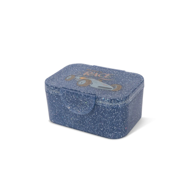 La lunchbox Konges Slojd est une boîte à lunch pailletée et illustrée, pratique pour les repas des enfants. En polypropylène avec couvercle en silicone, elle passe au lave-vaisselle mais non au micro-ondes.