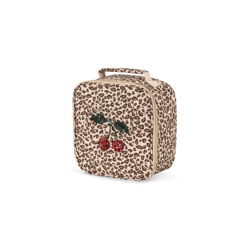 Avec son imprimé léopard et son motif cerises en sequins, il apporte une touche ludique et tendance que les enfants adorent. Compact et facile à transporter, il se glisse aisément dans un sac ou se porte à la main pour suivre toutes les aventures de la journée.
