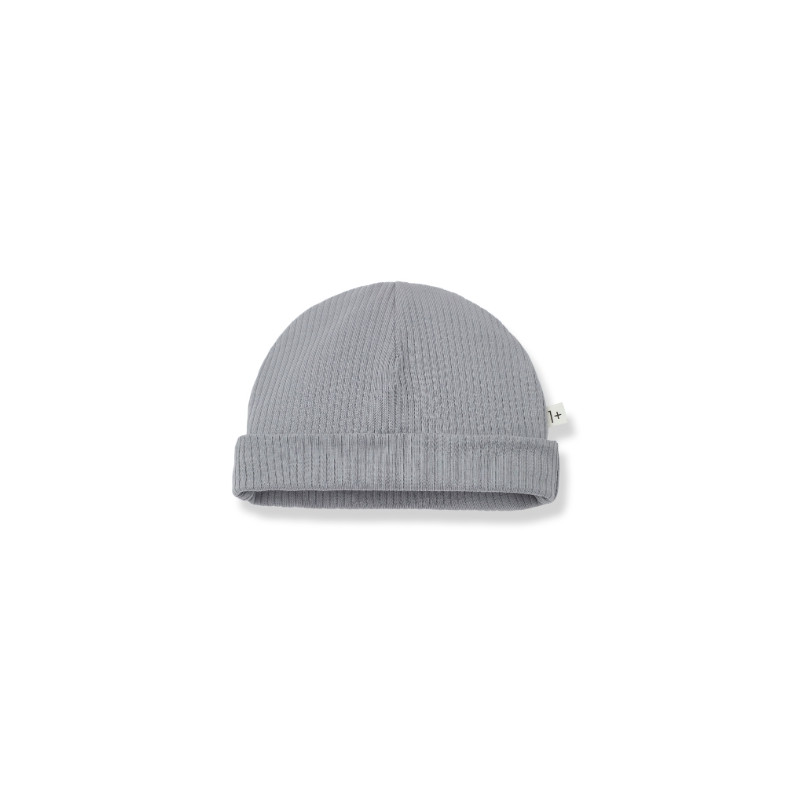Le bonnet Kai dans son nouveau coloris "smoky" est doux, léger et confortable pour la tête de bébé. Ce bonnet en tissu côtelé est doté d'un revers sur le bas et d'une étiquette de marque cousue. Il est idéal pour les premiers jours et mois de bébé. Il existe en d'autres coloris.