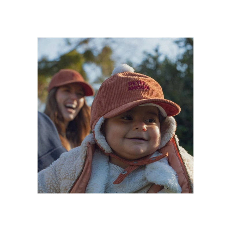 Toute douce et irrésistiblement moelleuse, la chapka Petit Amour de Chamaye est un cocon de chaleur pour les petites têtes. En velours côtelé caramel et doublée d’une fausse fourrure toute douce, elle protège du froid avec tendresse et style. Le pompon et la visière ajoutent la touche craquante parfaite pour les journées d’hiver.