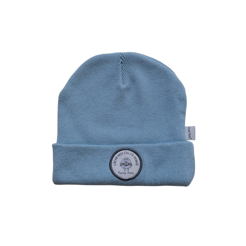 Découvrez chez little&tall, le bonnet "Morse" pour les kids, coloris "new bleu" de la marque Poule Party. Doux et 100% confort, ce bonnet est doté d'un écusson "lâche-moi ou j'te morse". Il est conçu en 100% coton biologique certifié GOTS.