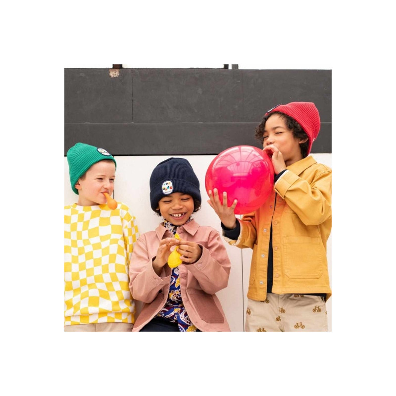 Découvrez chez little&tall, le bonnet en coton "The Gang" coloris marine de la marque Chamaye. Il est conçu en 100% coton biologique. Ce bonnet est idéal à porter en duo avec ses parents pour créer un look matchy-matchy.