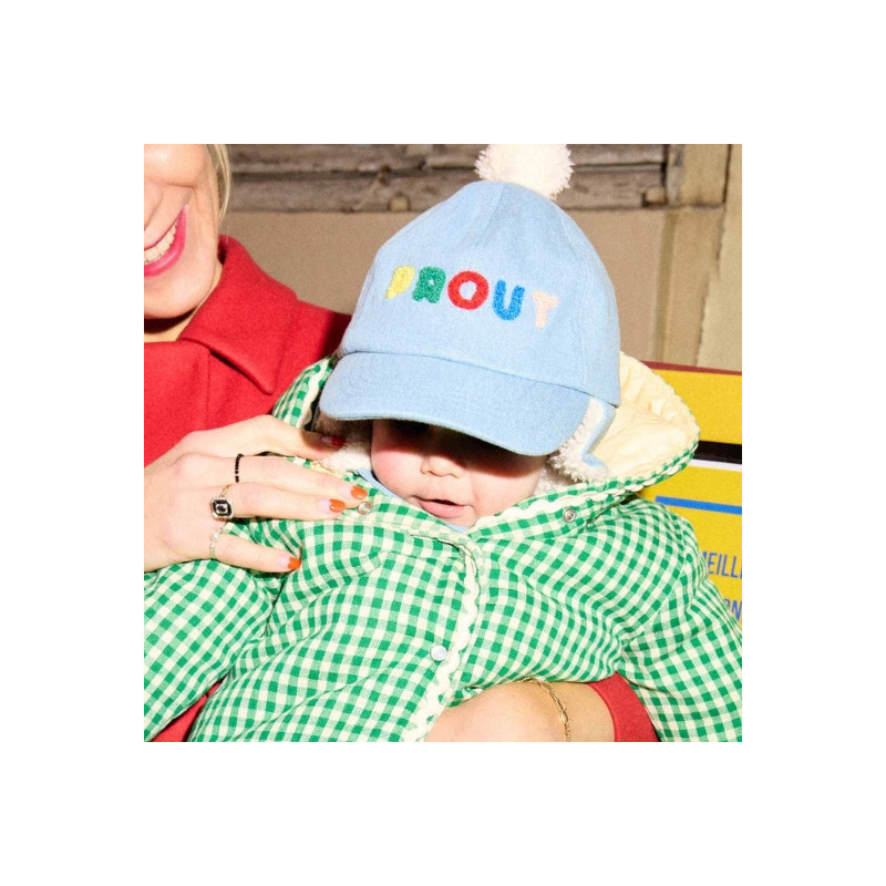 La collab la plus rigolote de l’hiver signée Chamaye x Chœur Cœur ! Cette chapka en denim bleu clair, doublée de fausse fourrure toute douce, est brodée du mot magique “PROUT” en lettres bouclette multicolores. Chaude, confortable et pleine d’humour, elle accompagne les petits de 3 mois à 6 ans pour affronter le froid avec le sourire (et un petit éclat de rire).