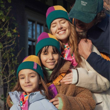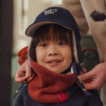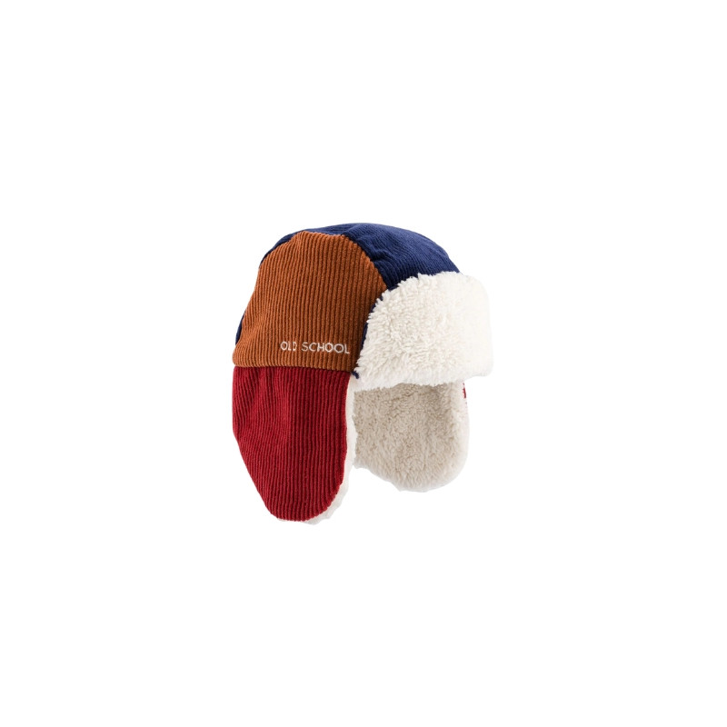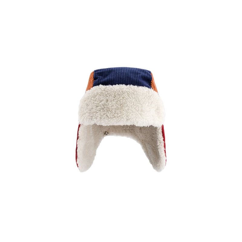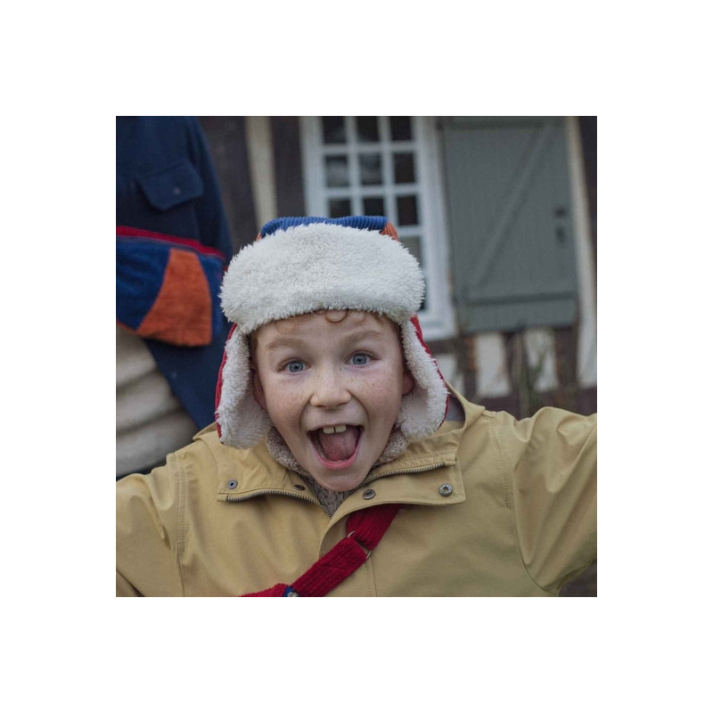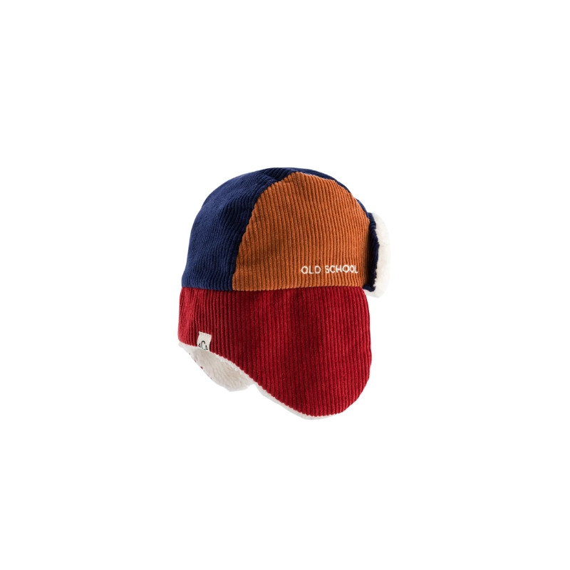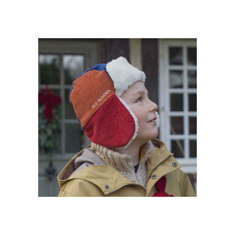 Retour dans les années rétro avec la chapka Old School de Chamaye velours côtelé tricolore — bleu marine, caramel et rouge brique — et doublée d’une fausse fourrure ultra-moelleuse, elle garde les petites têtes bien au chaud tout l’hiver. Un mélange parfait entre confort, douceur et look vintage à croquer.