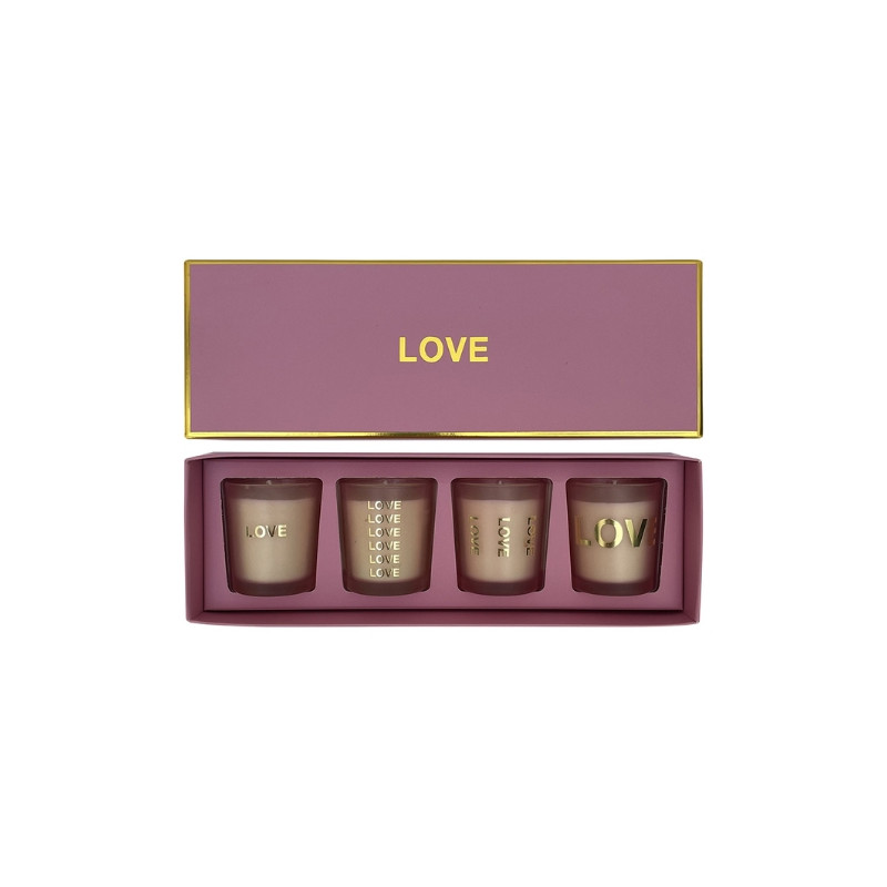 Apportez une ambiance chaleureuse et romantique à votre intérieur avec ce coffret de 4 mini bougies "LOVE". Une touche d’élégance, un soupçon de parfum fruité, et beaucoup d’amour à partager ou à garder pour soi !