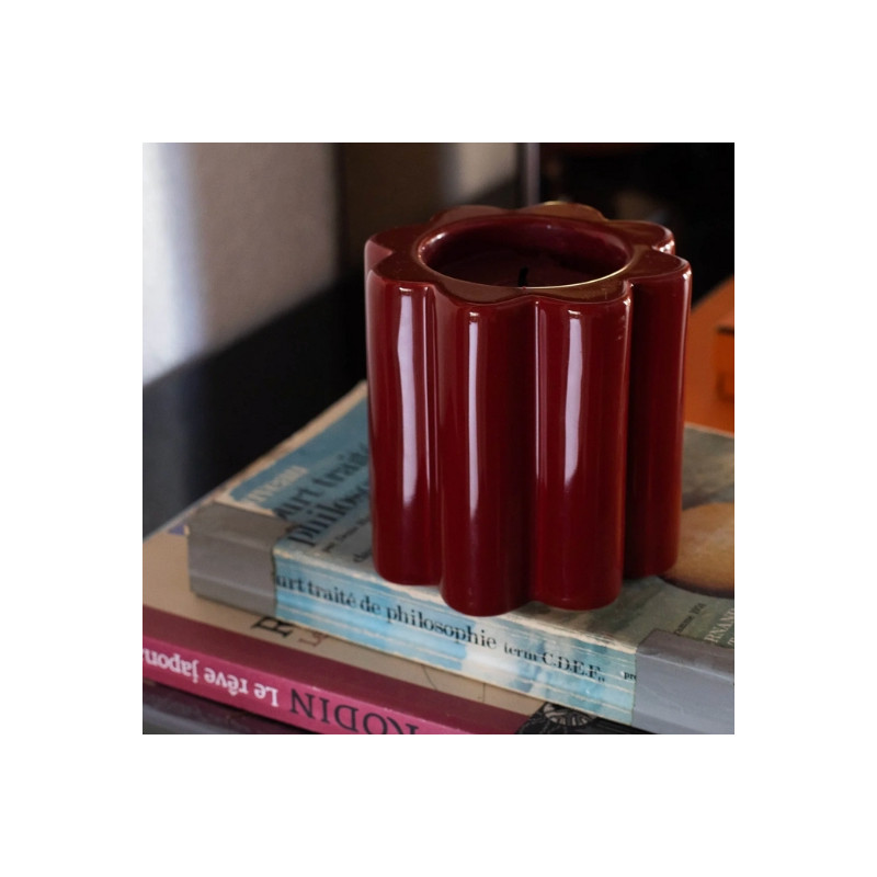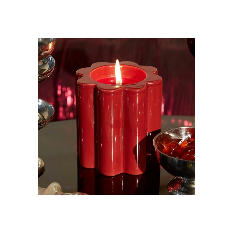 Cette bougie rouge en cire végétale séduit par son élégance ton sur ton : son contenant en céramique assorti crée une pièce chaleureuse et décorative. Dotée d’un parfum de santal, elle diffuse une senteur boisée et enveloppante. Avec ses 240 g, elle offre jusqu’à 50 heures de brûlage. Le contenant est fabriqué au Portugal et la cire en France, pour un produit alliant savoir-faire et qualité.