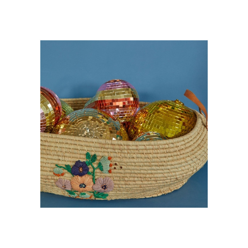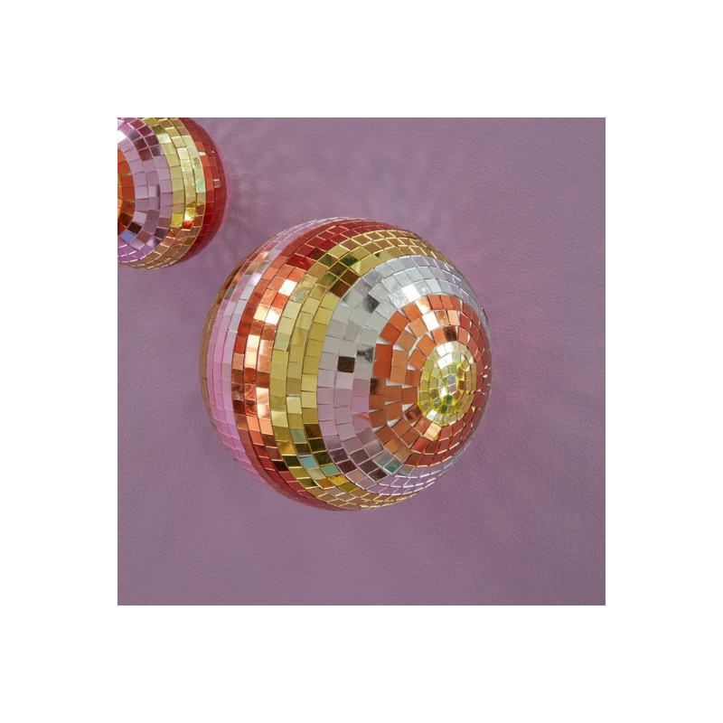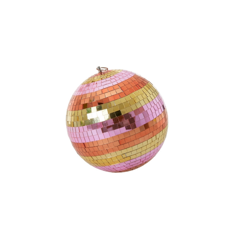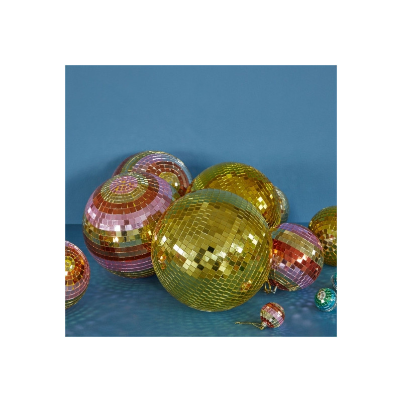 À suspendre pour une soirée, à poser au sol ou sur une meuble, découvrez chez little&tall notre boule à facettes multicolore et dorée. Les rayons du soleil sur la boule créeront de magnifiques points brillants, des petites paillettes lumineuses dans votre pièce. Idéale en accumulation.