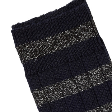 Beaux jeux de points, texture douce, créativité et savoir-faire, ces chaussettes sont tricotées artisanalement en laine recyclée. Leur but : Créer des chaussettes chics tout en étant responsable.