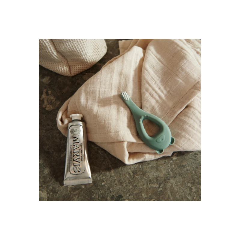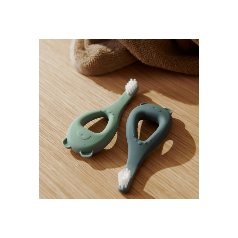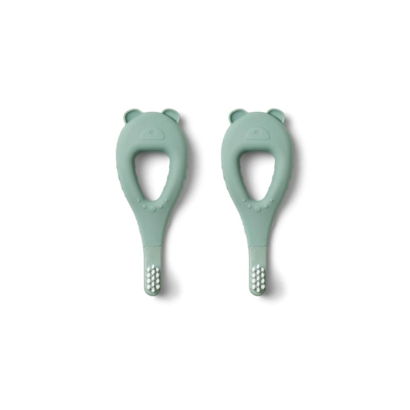 Ce lot de 2 brosses à dents Janelle de chez Liewood est le choix parfait pour assurer une bonne hygiène dentaire à votre bébé tout en rendant le moment du brossage amusant et stimulant. En plus de son coloris peppermint frais, les détails oursons offriront du fun à votre enfant. Sa structure facilite la prise en main et ses poids doux facilitent le parcours de vos tout-petits vers des dents saines.
