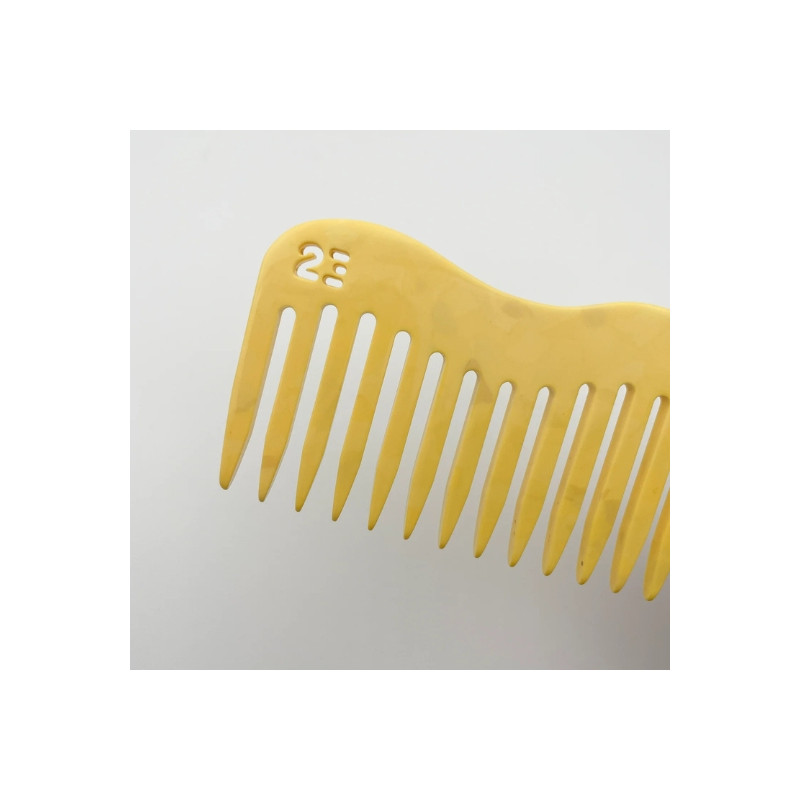 Voici le peigne Sunny signé 23 degrés qui va mettre du pep’s dans votre routine capillaire ! Jaune soleil, forme ondulée, matière écolo… Il a tout pour plaire. Fabriqué avec amour à la main dans le Jura, ce peigne est conçu en acétate de cellulose, une matière végétale issue du coton et du bois, douce pour vos cheveux et pour la planète.