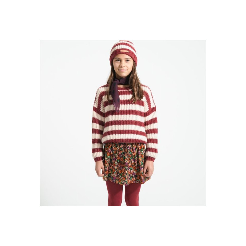 Piupiuchick : Pull en maille enfant - bordeaux / light pink stripes