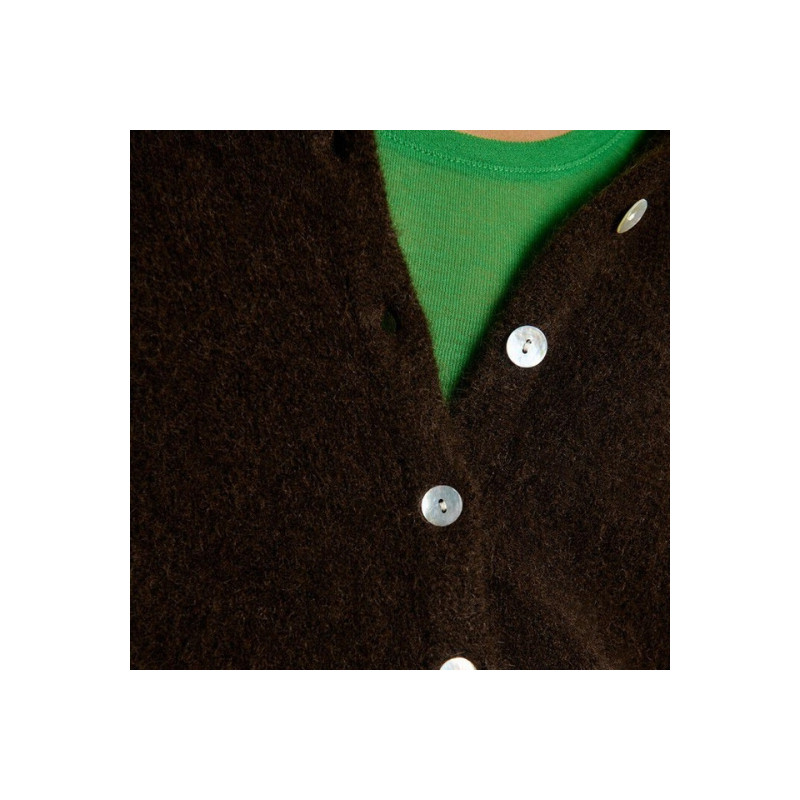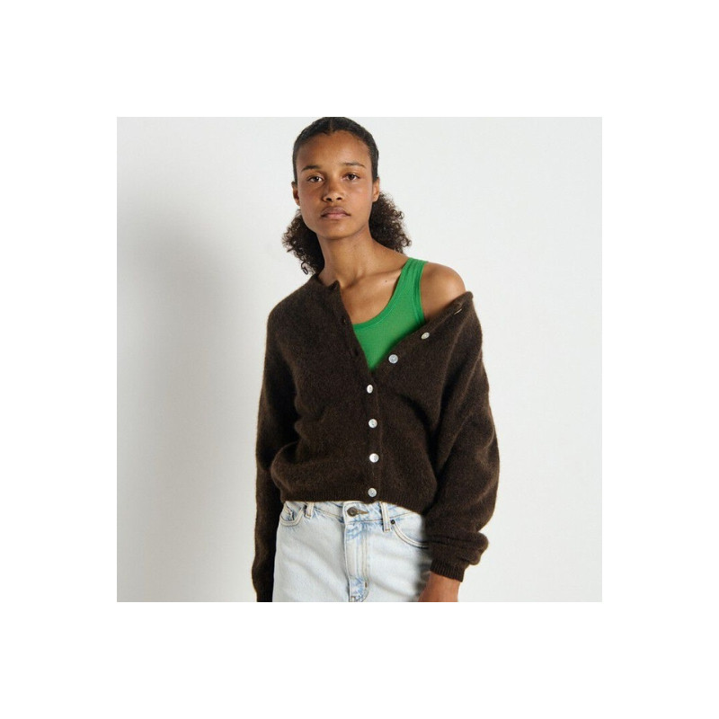 Le gilet Vitow de la marque American Vintage est un essentiel cocooning. Avec sa coupe courte boule, ses manches longues et son col rond boutonné, il combine confort et féminité. Confectionné dans un mélange doux d’alpaga, de laine et d’élasthanne, il est idéal pour réchauffer vos looks de saison. À porter seul ou superposé selon vos envies.