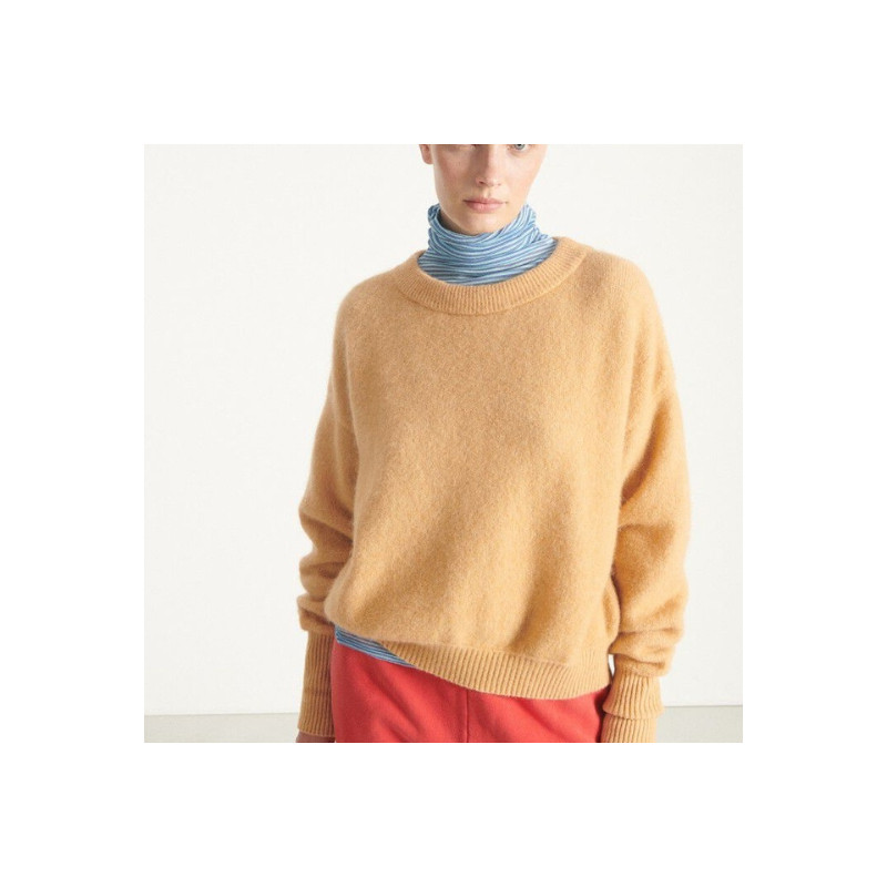 Le pull Vito d’American Vintage combine douceur et confort avec sa coupe ample et son col bateau. En maille chaude à base d’alpaga et de laine, il est idéal pour les journées fraîches.