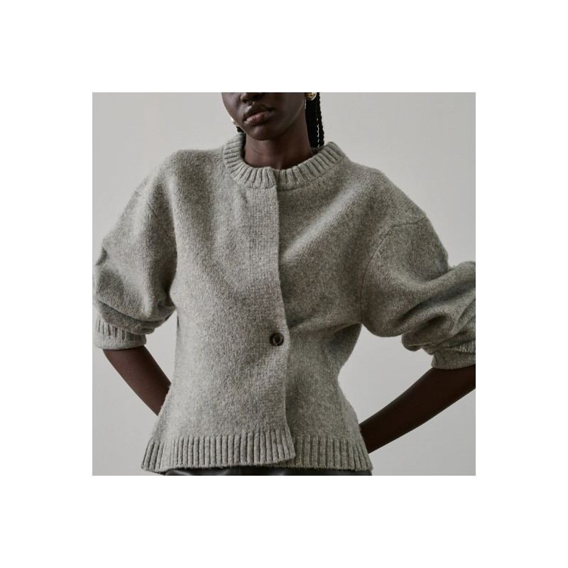 Galileo est un cardigan en maille feutrée épaisse au tombé structuré. Sa coupe ample, délicatement cintrée à la taille, met en valeur la silhouette tout en conservant une allure confortable. Les manches longues et l’encolure ronde apportent une élégance intemporelle, facile à porter au quotidien. Confectionné en laine mérinos, il offre une chaleur douce et un confort optimal. Sa maille dense garantit une belle tenue et souligne les volumes arrondis avec justesse.