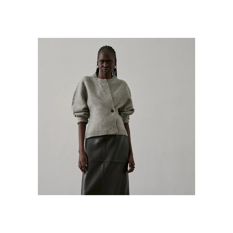 Le cardigan Galileo est réalisé en maille feutrée épaisse. Sa coupe est ample et cintrée à la taille. Les manches longues et l’encolure ronde offrent une allure intemporelle. La laine mérinos apporte chaleur et confort. Sa maille dense assure une tenue parfaite.