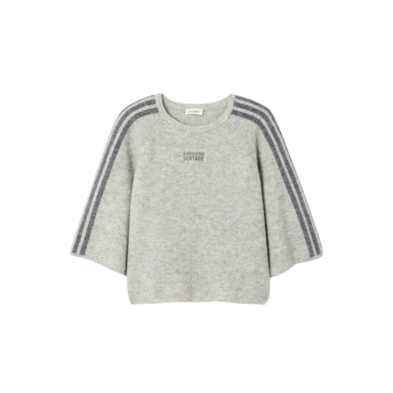 American vintage : Pull manches 3/4 Vitow - gris clair chiné