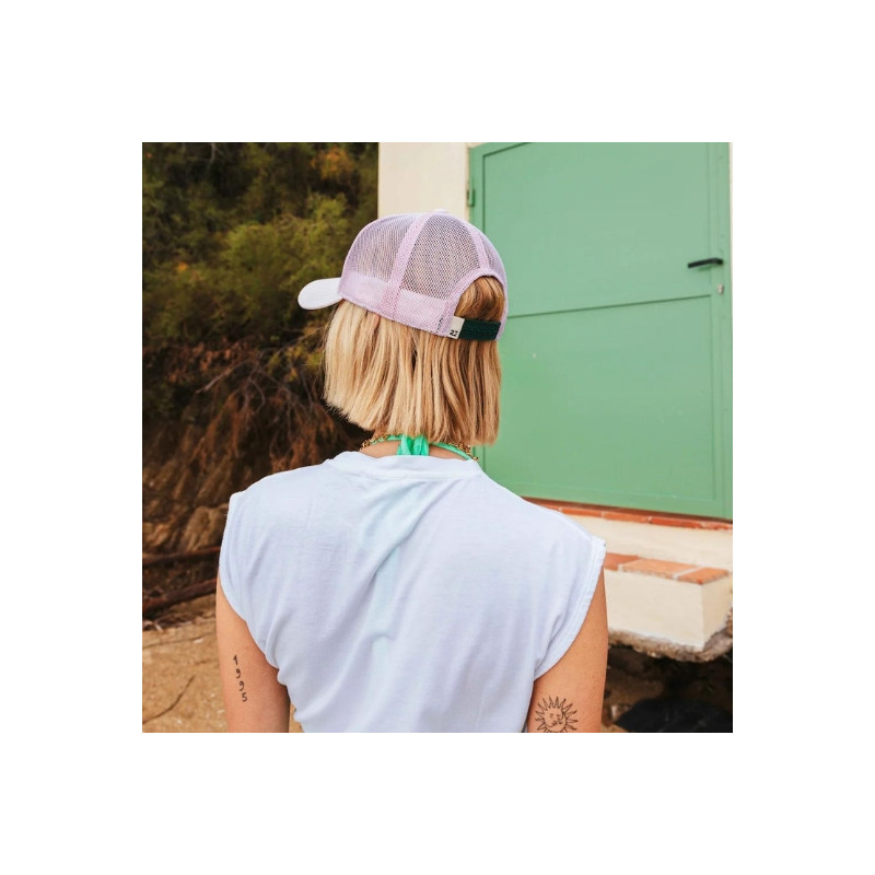 La casquette Sunshine iconique de chez 23 Degrés dans son coloris rose pâle promet d'apporter chic et couleurs vives à vos tenues estivales! Ce modèle, parfait pour l'été, allie confort, style et protection solaire, tout en étant respectueuse de l'environnement. Son design tendance et ses broderies couleur menthe et violet en font un accessoire pep's pour n'importe quelle tenue. Confectionnée en édition limitée à 150 exemplaires, elle est LA casquette à ajouter à sa collection.
