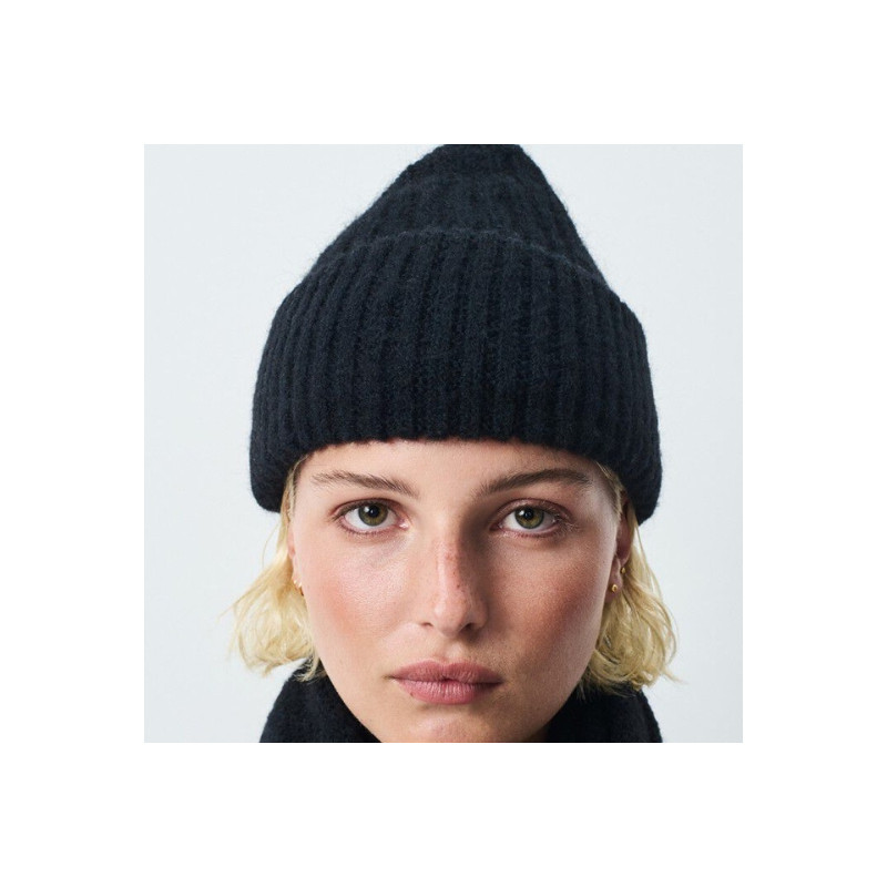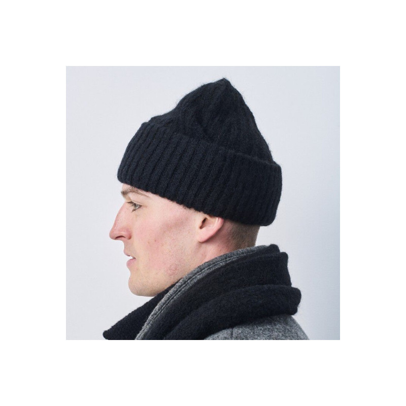 Bonnet noir American Vintage en maille chaude et douce. Parfait pour l’hiver grâce à son mélange d’alpaga. Lavage à la main.