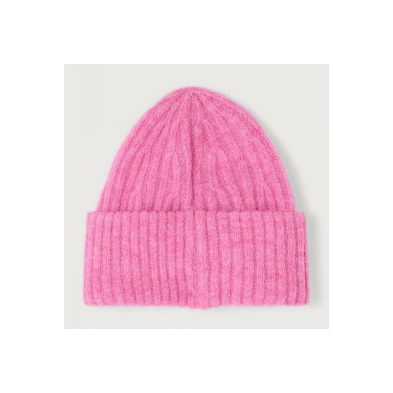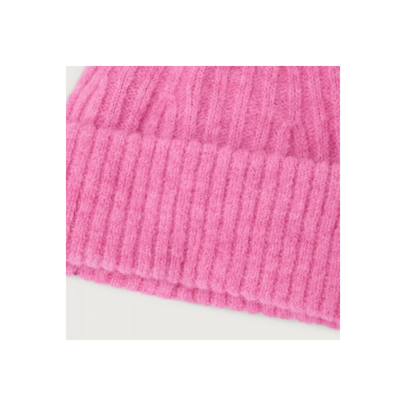 Bonnet rose American Vintage en maille chaude et douce. Mélange d’alpaga, laine et fibres synthétiques. Lavage à la main.