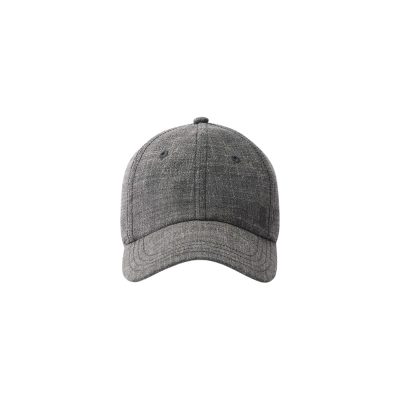 La casquette Serena de la marque Soeur en tissu gris chiné est brodée du monogramme "S" et du logo Soeur, avec surpiqûres soignées, visière renforcée et finitions gros grain.