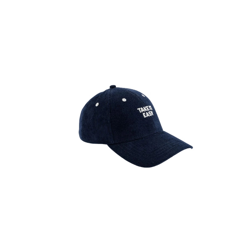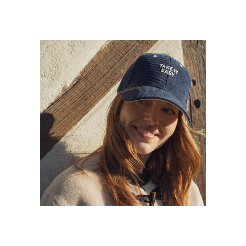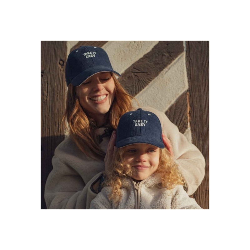 La casquette Take it Easy de Chamaye invite à la détente avec style. En velours côtelé bleu profond et broderie blanche contrastante, elle allie douceur, confort et allure rétro. Parfaite pour compléter vos tenues casual avec une touche cool et décontractée, seule ou assortie à la version enfant pour un duo complice.