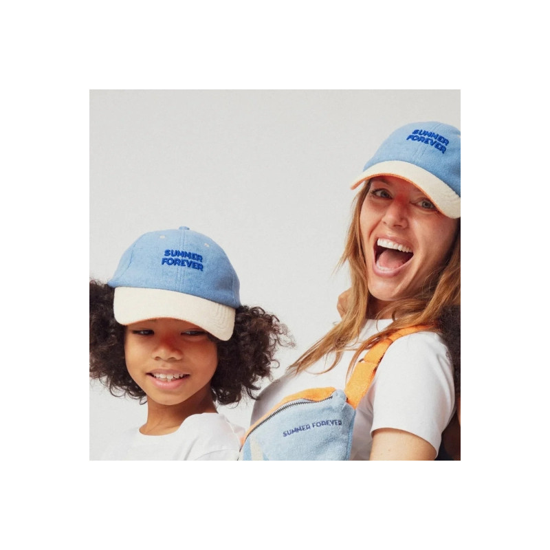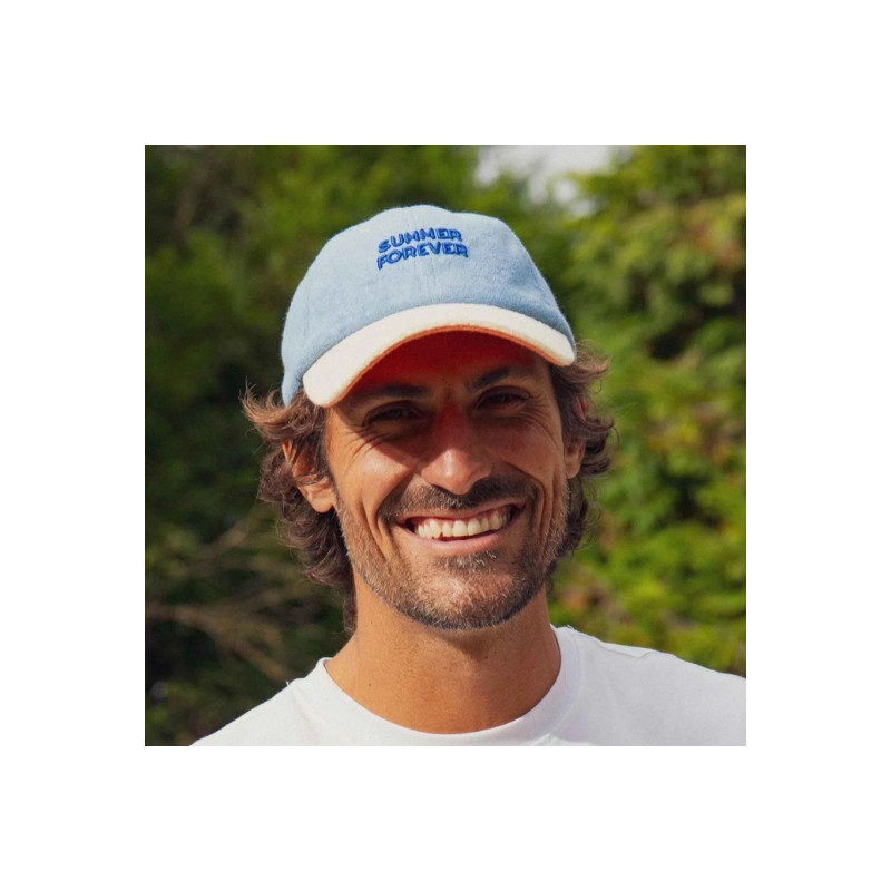 Son coloris bleu, associé à une visière contrastée, est sublimé par la broderie “Summer Forever” à l’avant, pour un esprit vacances assumé. Légère et facile à porter, elle s’adapte à toutes les tenues et devient rapidement un indispensable des beaux jours.