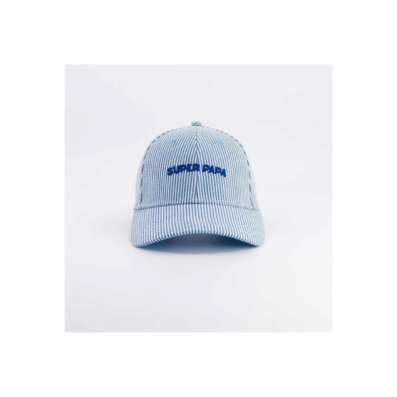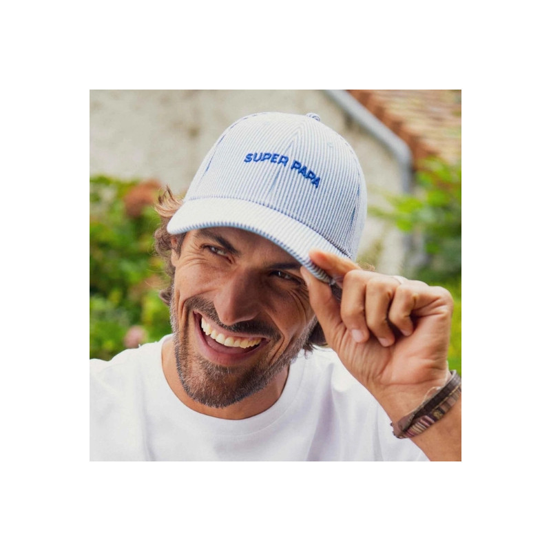 La casquette Super Papa de chez Chamaye est l’accessoire parfait pour afficher fièrement son titre avec style et bonne humeur. Avec son motif marinière bleu intemporel et sa broderie “SUPER PAPA", elle apporte une touche à la fois élégante et décontractée.