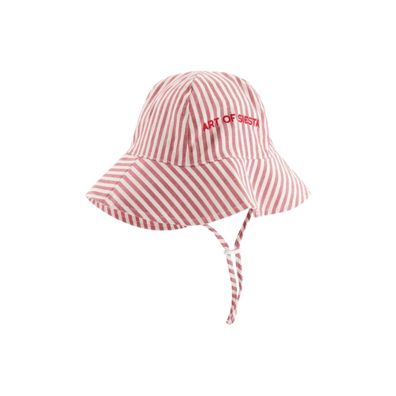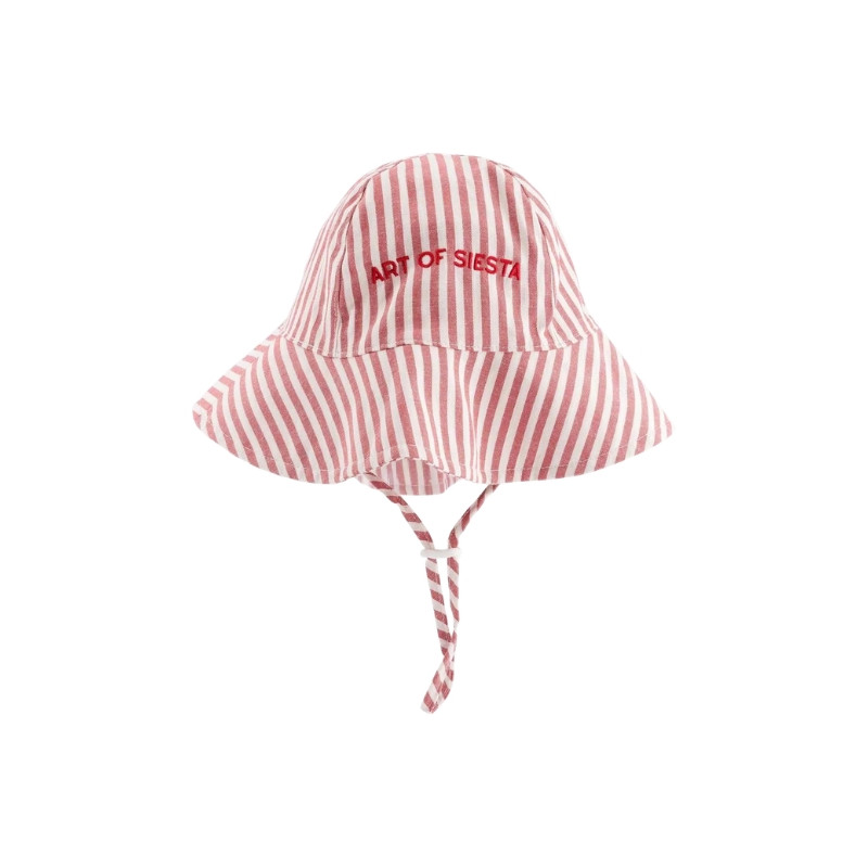 Le chapeau Art Of Siesta de chez Chamaye séduit par ses rayures rouges et son esprit estival. Léger et pratique, il protège du soleil avec style et bonne humeur.