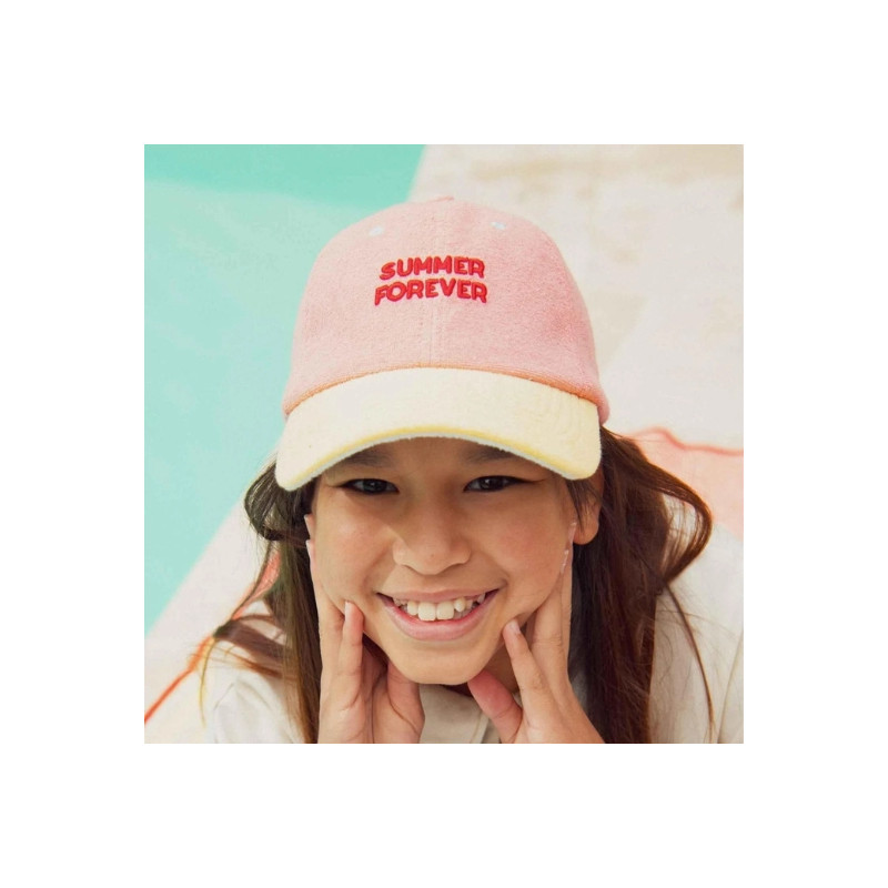 Son coloris rose délicat, associé à une visière contrastée, est sublimé par la broderie “Summer Forever” à l’avant, pour un esprit vacances plein de fraîcheur. Légère et facile à porter, elle complète parfaitement toutes vos tenues d’été, du bord de mer à la ville.