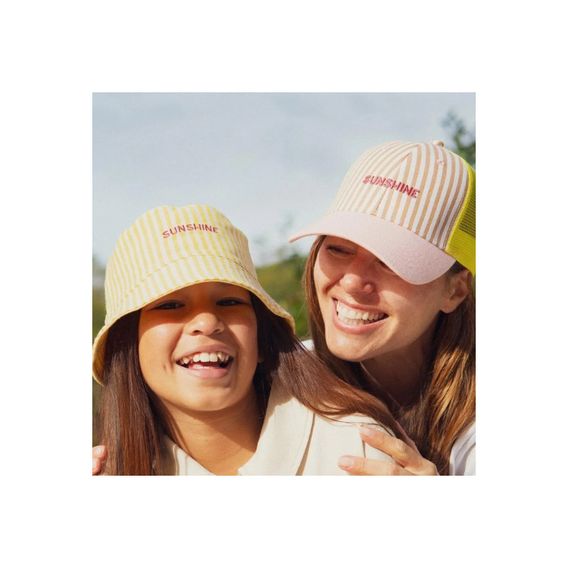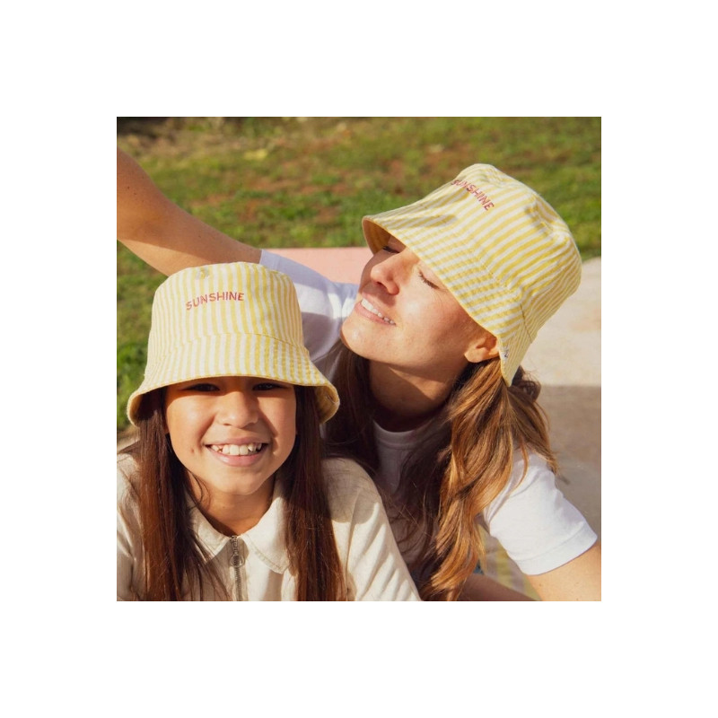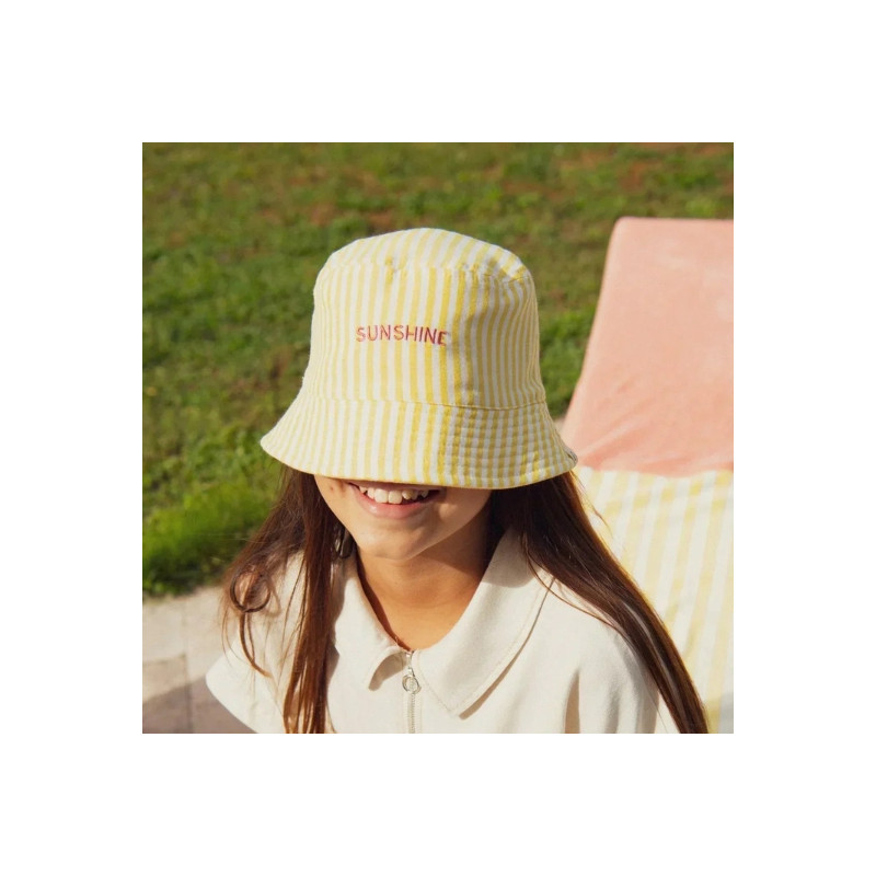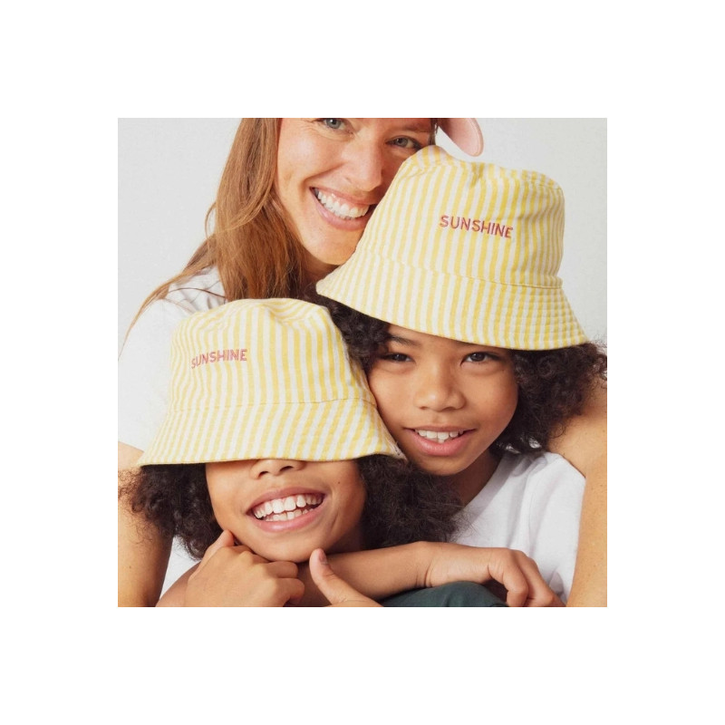 Le bob réversible Sunshine de chez Chamaye est l’accessoire parfait pour accompagner les journées ensoleillées avec style et légèreté. Avec ses jolies rayures jaunes et sa broderie “SUNSHINE”, il apporte une touche lumineuse et joyeuse à toutes les tenues.