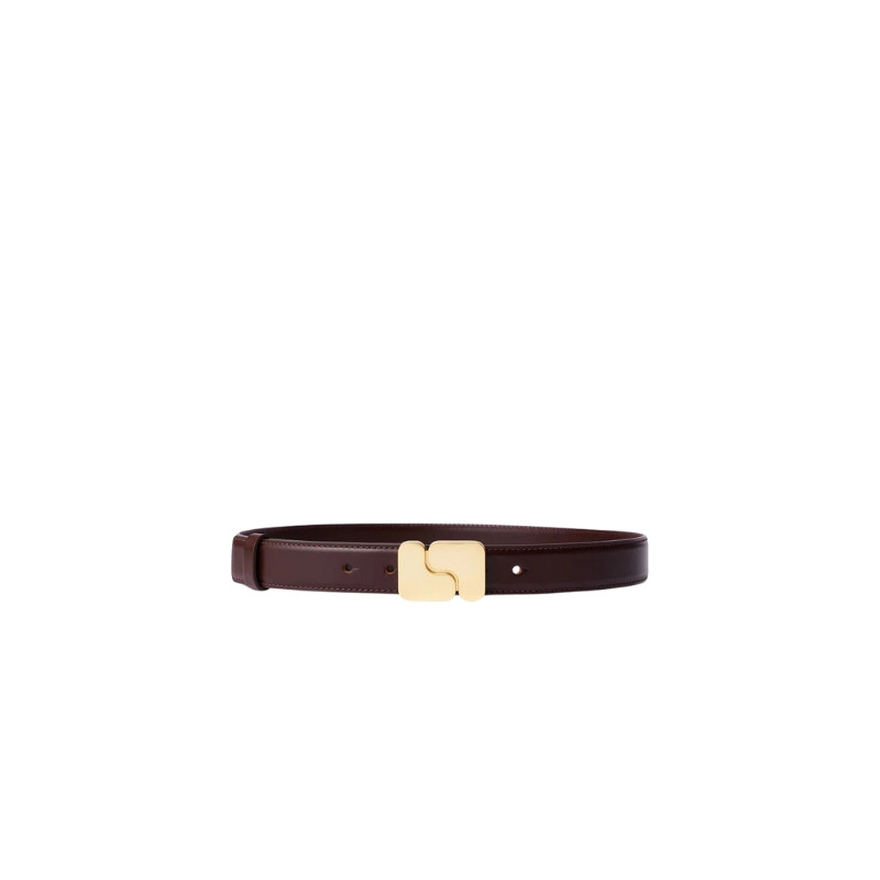 Ceinture Ninon Soeur en cuir glacé chocolat, largeur 3 cm, avec fermoir monogramme doré "S". 100 % cuir de vache certifié Leather Working Group.