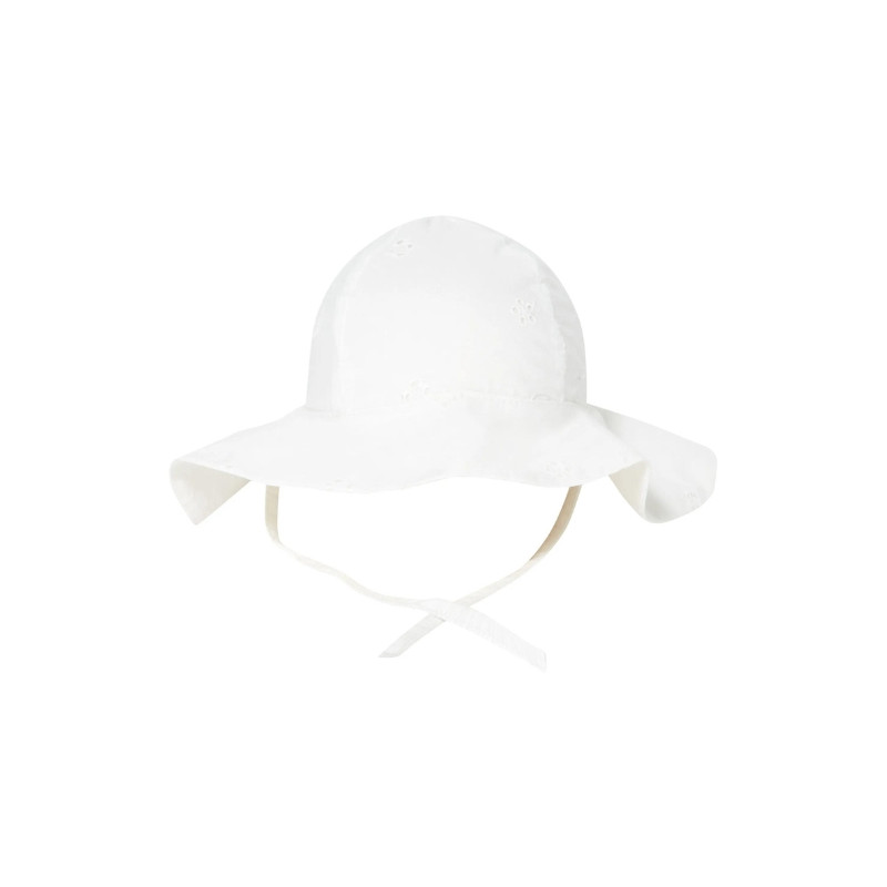Le chapeau Konges Slojd est un accessoire élégant et fonctionnel conçu pour protéger les bébés du soleil tout en ajoutant une touche de style. Fabriqué avec des détails soignés tels que des œillets brodés et des volants, ce chapeau est parfait pour les petites têtes délicates.