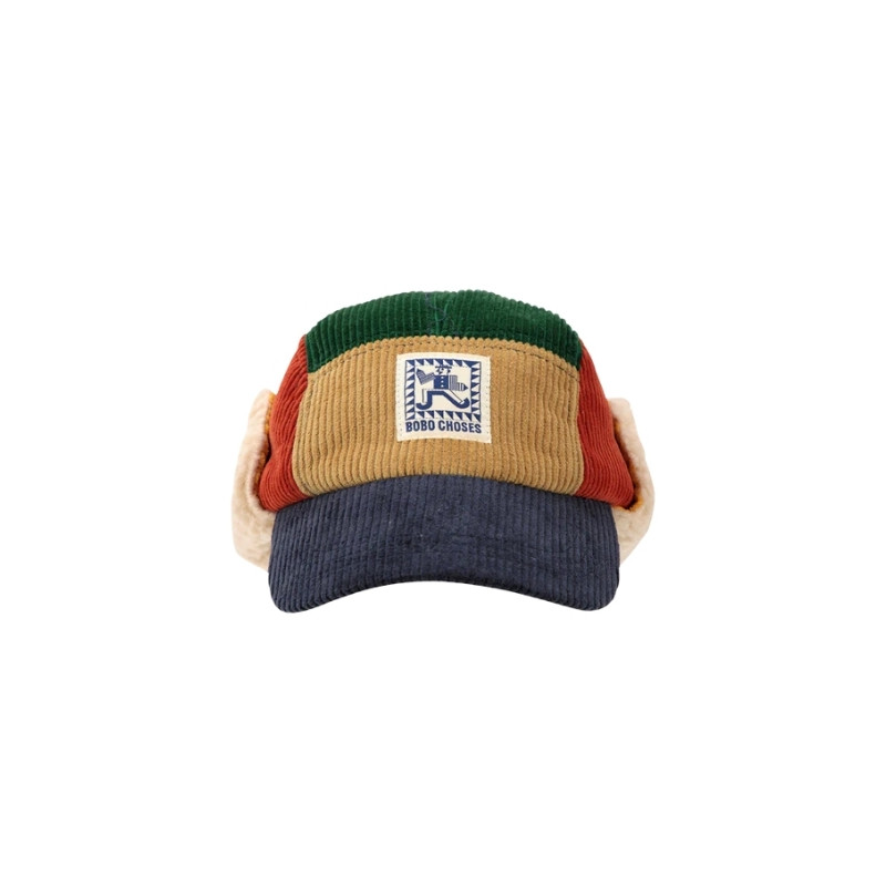 La casquette d’hiver enfant Mr Pencil Corduroy de chez Bobo Choses est idéale pour garder la tête bien au chaud tout en ajoutant une touche rétro. Confectionnée en velours côtelé multicolore avec protège-oreilles doublés en sherpa, elle allie style, confort et protection contre le froid. Parfaite pour affronter l’hiver avec originalité.
