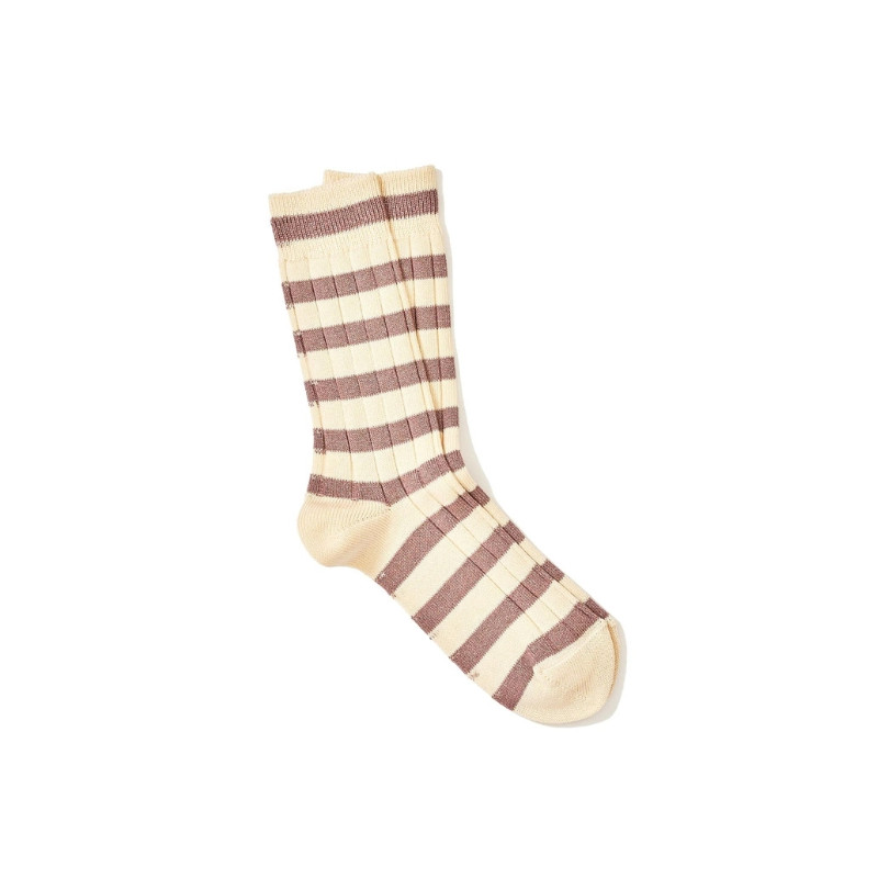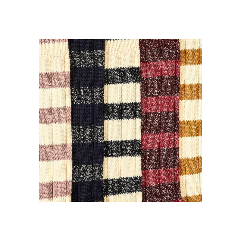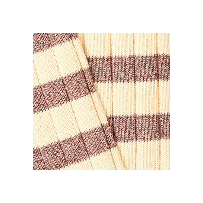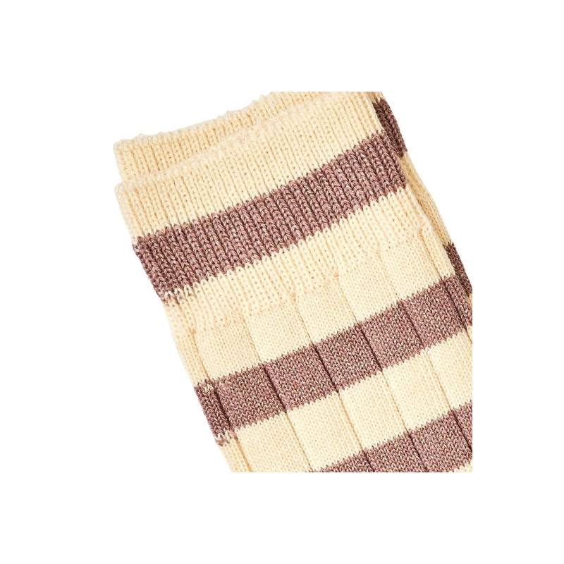 Découvrez chez little&tall, les chaussettes Misia rayées coloris "ivoire et poudré" de la marque Royalties. Elles sont tricotées à partir de fils en coton et en lurex, un mélange doux et scintillant. Cette paire de chaussettes est idéale à porter avec une petite paire de baskets ou des bottes fourrées. Convient de la pointure 36 à 40.