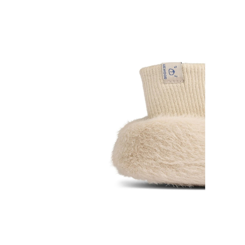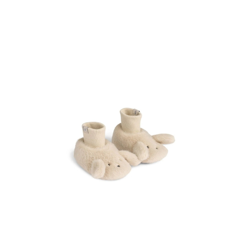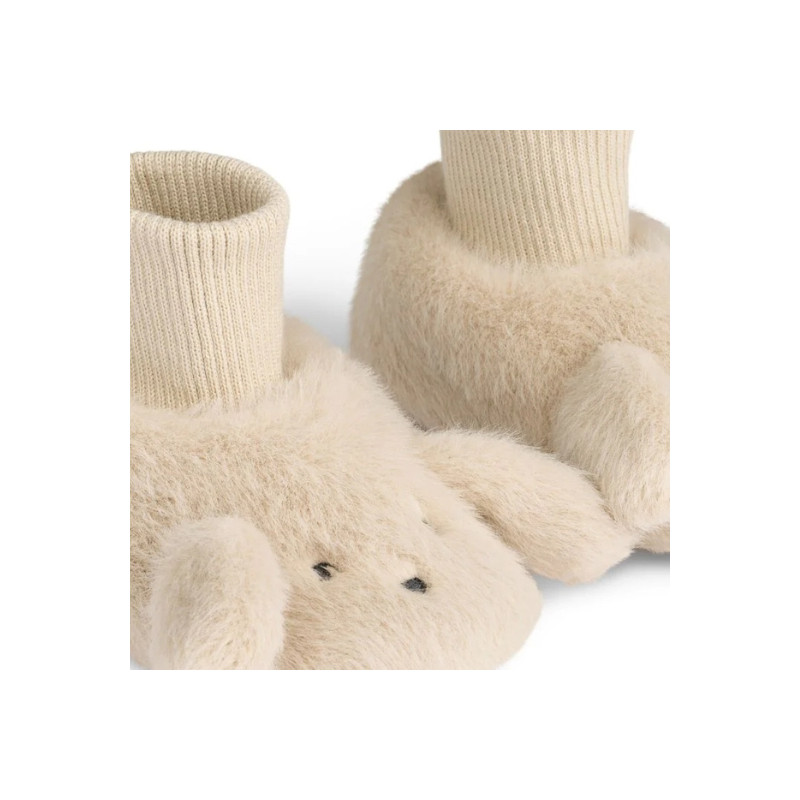 Chaussons bébé Liewood Beth en peluche douce avec détails animaux, revers côtelé pliable pour un bon maintien et semelles antidérapantes. Confort et chaleur garantis pour les petits pieds.