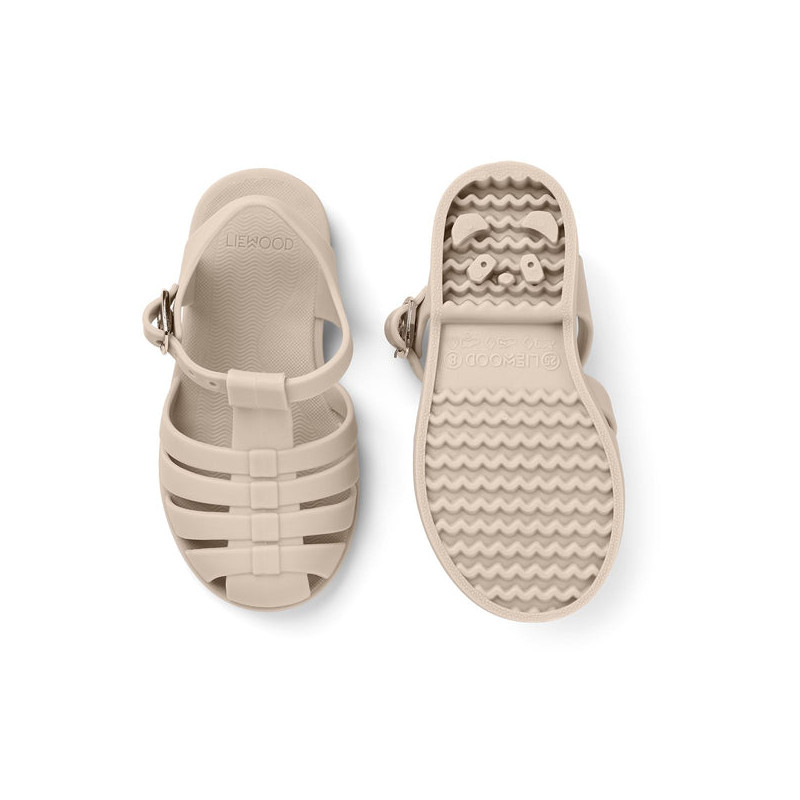 Souples et légères, optez pour les sandales de plage Bre en coloris sandy de la marque Liewood. Elles permettront à votre enfant d'aller facilement de l'eau au sable. Elles sont parfaites pour la plage car le PVC n'absorbera pas d'eau. Vos enfants vont adorer les avoir aux pieds et laisser de jolies empreintes de pas en forme de panda.