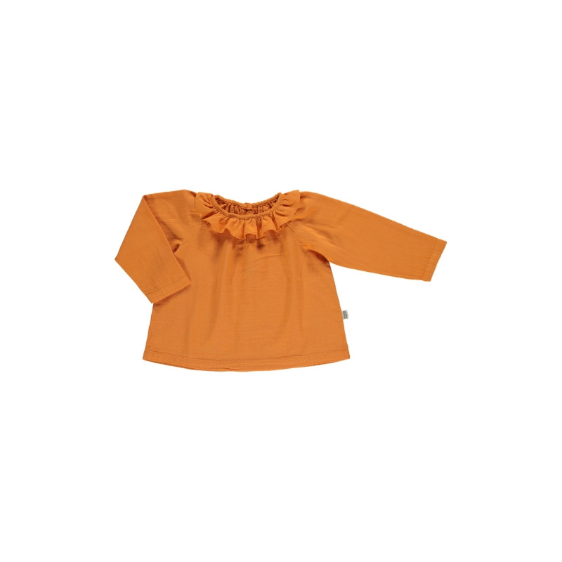 Iconique et intemporelle, découvrez la blouse Charme de la marque Poudre Organic dans son tout nouveau coloris peps : russet orange. Elle est conçue en 100% coton biologique. Cette blouse légère est dotée de manches longues, d'un col à volant et de petits boutons. Elle peut se porter dans les deux sens : avec les boutons à l'avant ou au dos.
