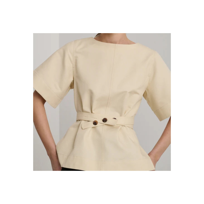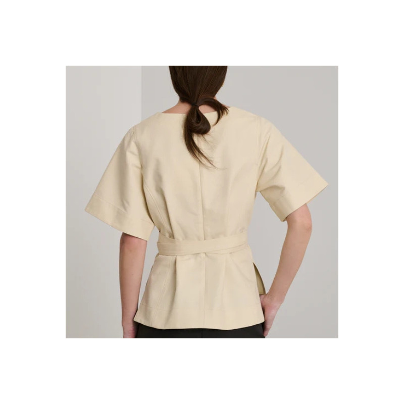 La blouse Emmie de Soeur, c'est le parfait équilibre entre minimalisme chic et détails travaillés. Avec sa coupe ceinturée et sa toile en coton double, elle est idéale pour apporter une touche sophistiquée à vos tenues du quotidien.
