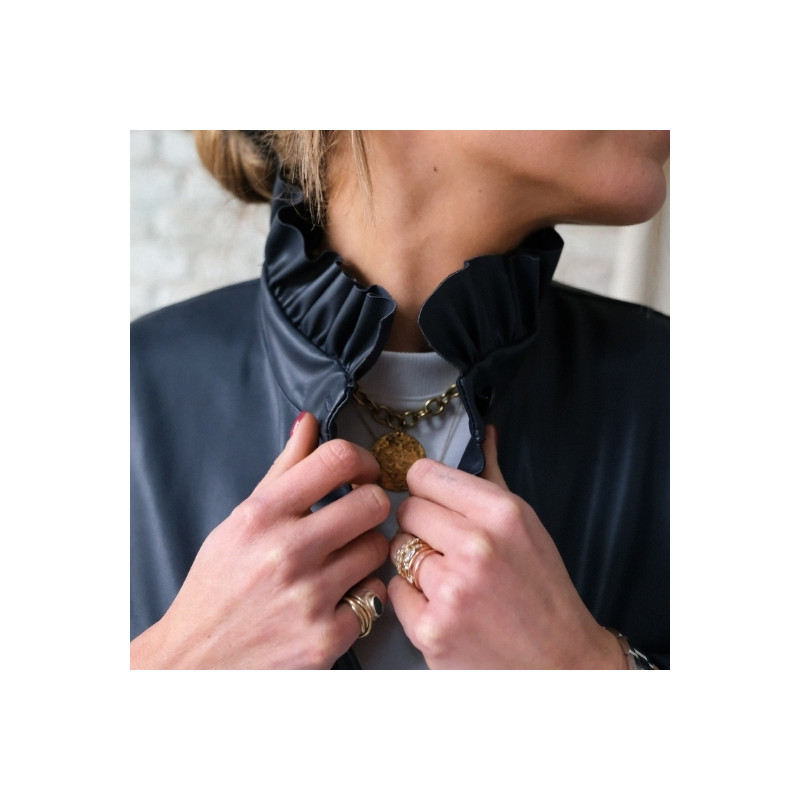 - Un col volanté discret, pour une touche féminine et raffinée.