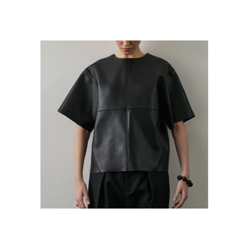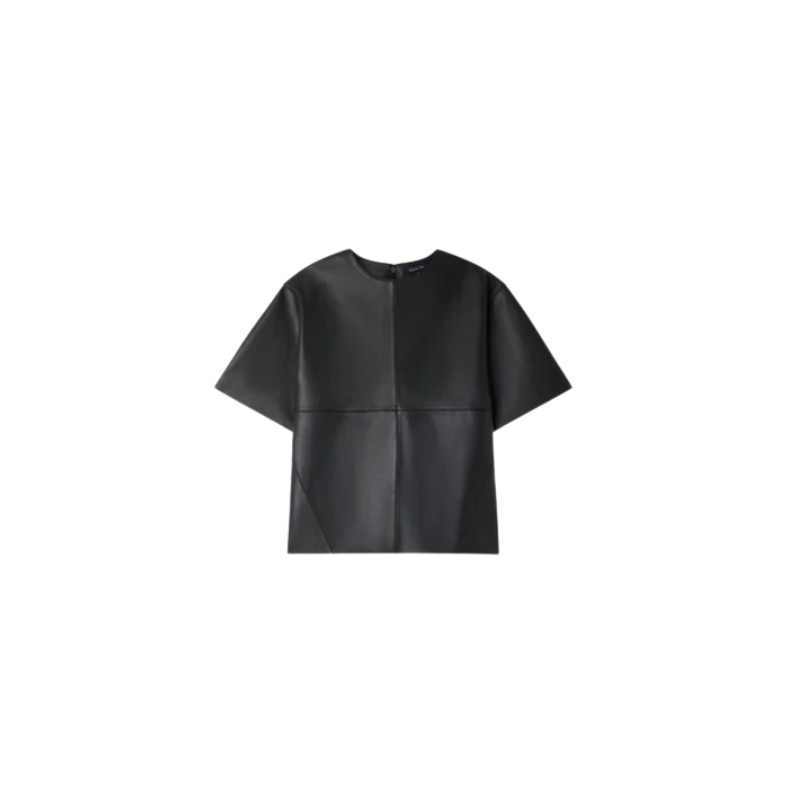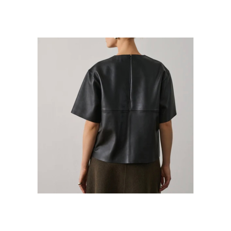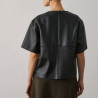 Top en cuir certifié Leather Working Group, à coupe ample, manches courtes, encolure ronde et fermeture zippée au dos.