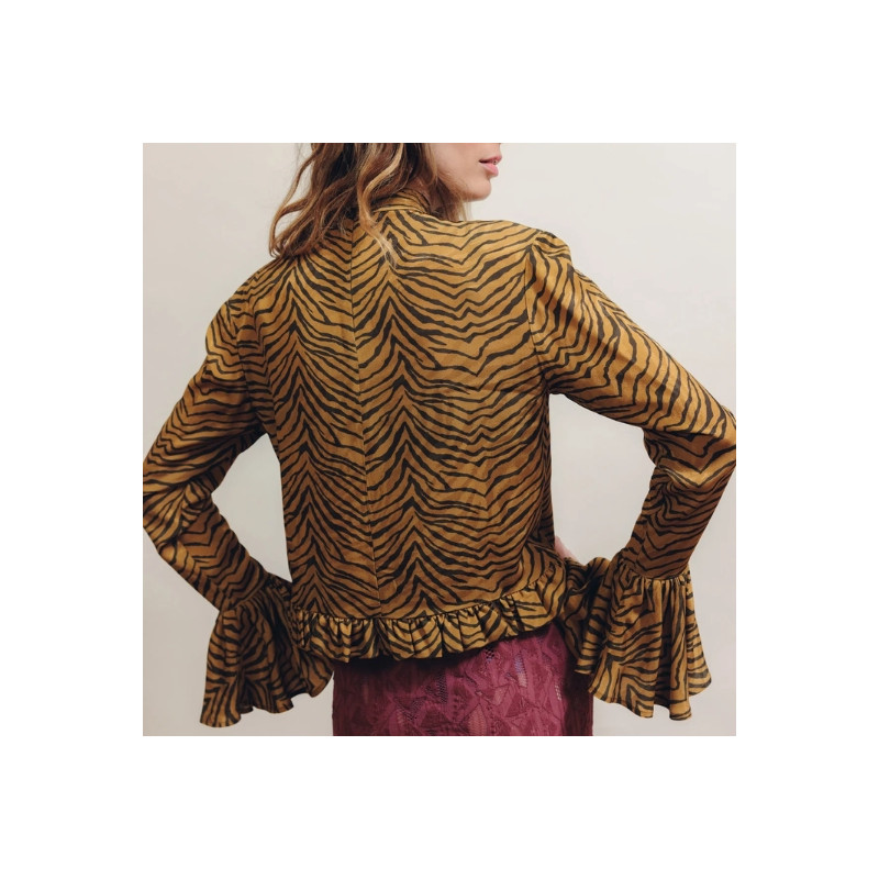 Le top Loie Tigre s’impose comme notre véritable coup de cœur. Confectionné en viscose fluide, il offre un tombé léger et agréable, parfait pour un porté quotidien. Facile à associer, il se porte aussi bien avec un jean pour une allure décontractée qu’en total look avec la veste Jade You Rock pour une silhouette plus affirmée et stylée.
