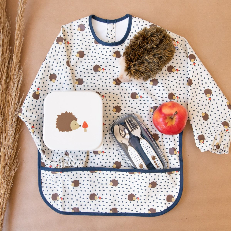 Découvrez le petit set de couvert imprimé hérisson. Ce set comprend une cuillère et une fourchette. Ces couverts sont en acier inoxydable. Ils sont livrés dans un petit étui en plastique permettant de les transporter et de les glisser facilement dans le cartable ou le sac à dos.